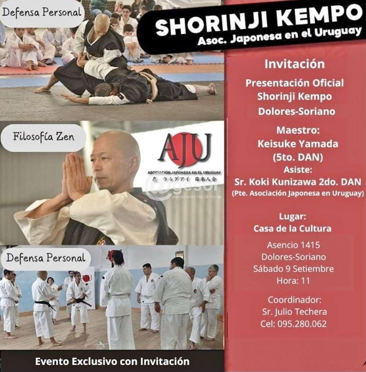 Este sábado 9 de setiembre a partir de las 11.00 horas en Casa de la Cultura de Dolores, ubicada en 1415 se lleva a cabo evento exclusivo con invitación coordinado por Julio Techera, de la Asociación Japonesa en el Uruguay, con tres aspectos: Defensa Personal; Filosofía Zen; y Defensa Personal.