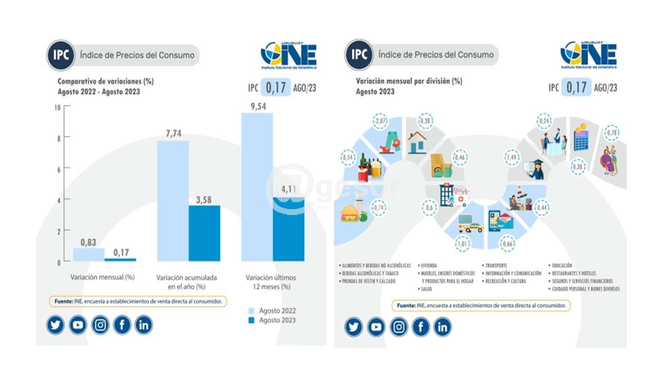 Así, en agosto de este año, la inflación se ubicó dentro del rango objetivo determinado por el Banco Central del Uruguay, de entre 3% y 6%.