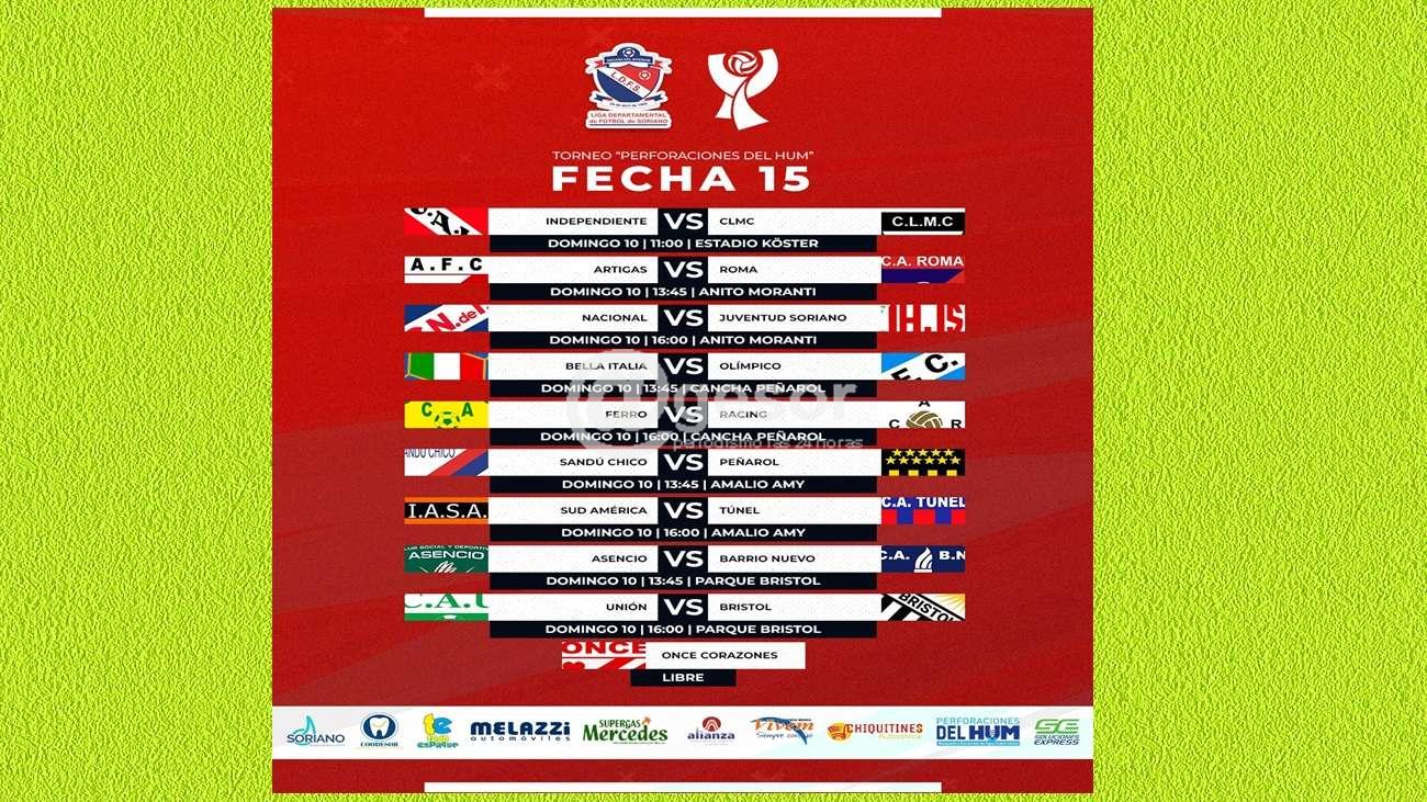 Se reunió la Liga Departamental de Fútbol de Soriano bajo la presidencia del Dr. Pablo Marrero a los efectos de tratar varios temas vinculados al fútbol local y proceder a fijar lo que será la apasionante fecha 15 del Torneo "Perforaciones del Hum" que dará comienzo este domingo 10 a la hora 11 en el Estadio Luis Koster en el choque entre el segundo posicionado en la tabla de posiciones Independiente enfrentando a un duro rival que se juega su chance de permanecer en el torneo como lo es el CLMC.