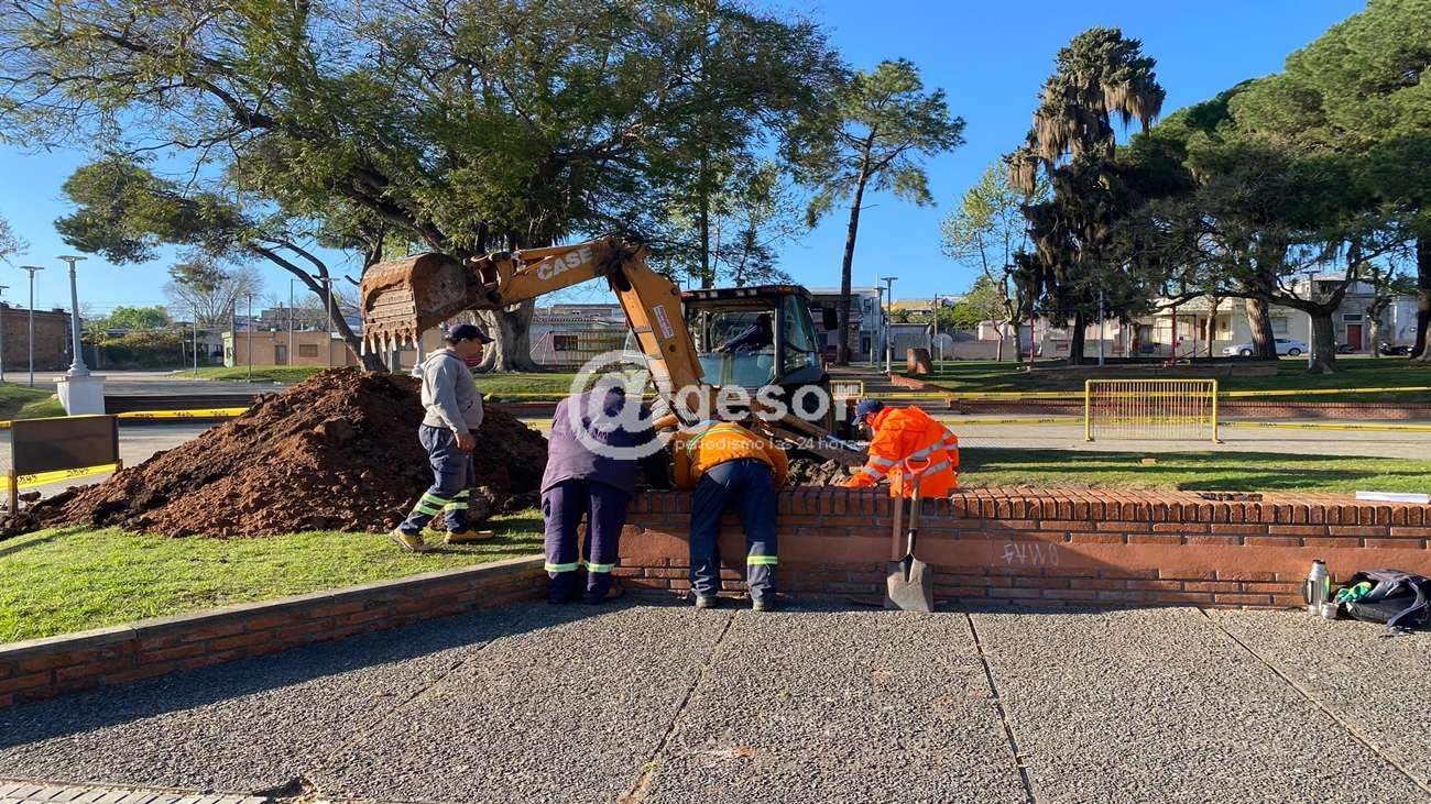 Esta tarea está a cargo de personal del Dpto. de Arquitectura, comenzando este miércoles a realizar la excavación para preparar la cimentación de la columna a instalar.