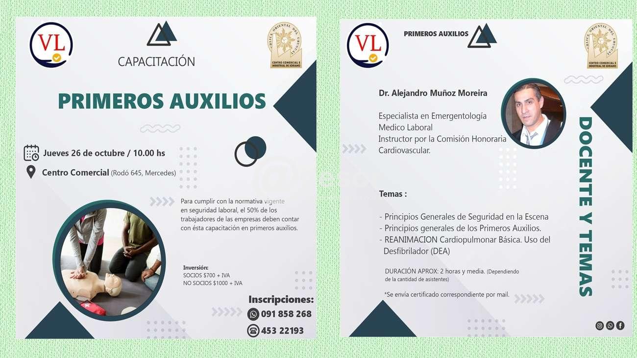 Para cumplir con la normativa vigente en seguridad laboral, el 50% de los trabajadores de las empresas deben contar con capacitación de primeros auxilios. Por éste motivo el Centro Comercial de Soriano y VL Seguridad Empresarial y Ocupacional organizan ésta capacitación en la ciudad de Mercedes.