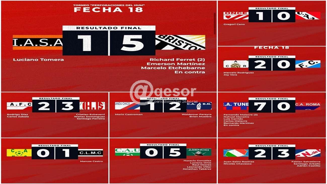Se jugó la 18va fecha del fútbol de Mercedes. Goleó el campeón, Bristol, y también se destacó la goleada de Túnel a Roma, por 7 a cero.