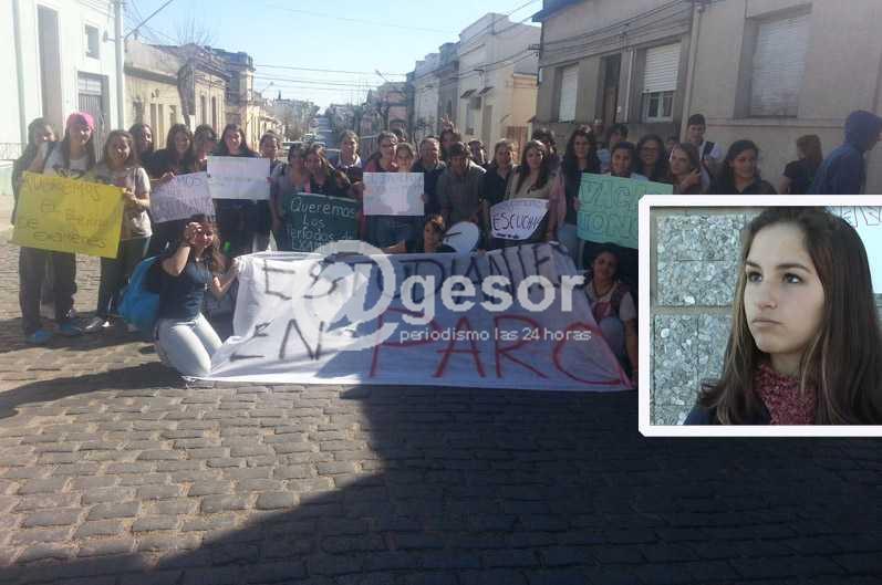 Al momento de manifestarse los alumnos frente al Liceo N°1 José María Campos, @gesor pudo hablar con una de las delegadas liceales, Giuliana Piaggio- de 4to año 6, quien explicó los motivos que han llevado a los propios estudiantes movilizarse en reclamo de varios puntos, entre ellos el derecho a las vacaciones en setiembre y tranquilidad para quienes deban dar exámenes dentro del período previsto.