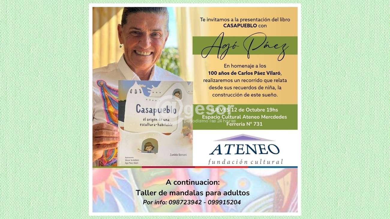Este jueves 12 de octubre en la fundación Ateneo se estará presentando el libro Casapueblo el origen de una escultura habitable. En la oportunidad estará presente Agó Páez. Este libro es un homenaje a los 100 años de Carlos Páez Vilaró.