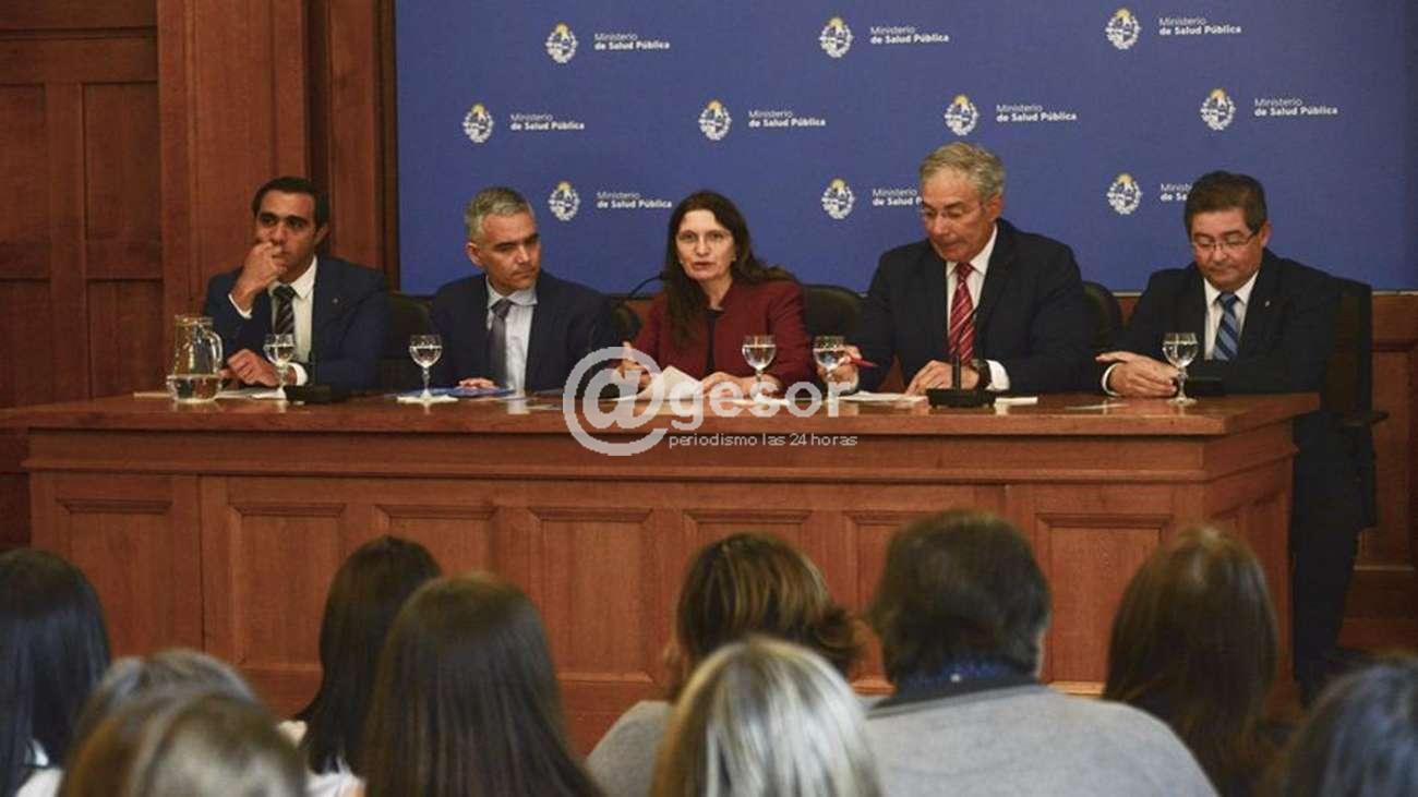 Participaron en la instancia la titular y el subsecretario del MSP, Karina Rando y José Luis Satdjian, respectivamente; los presidentes de ASSE, Leonardo CIpriani, y ANEP, Robert Silva, y el representante del Banco Interamericano de Desarrollo (BID), Luis Ríos.