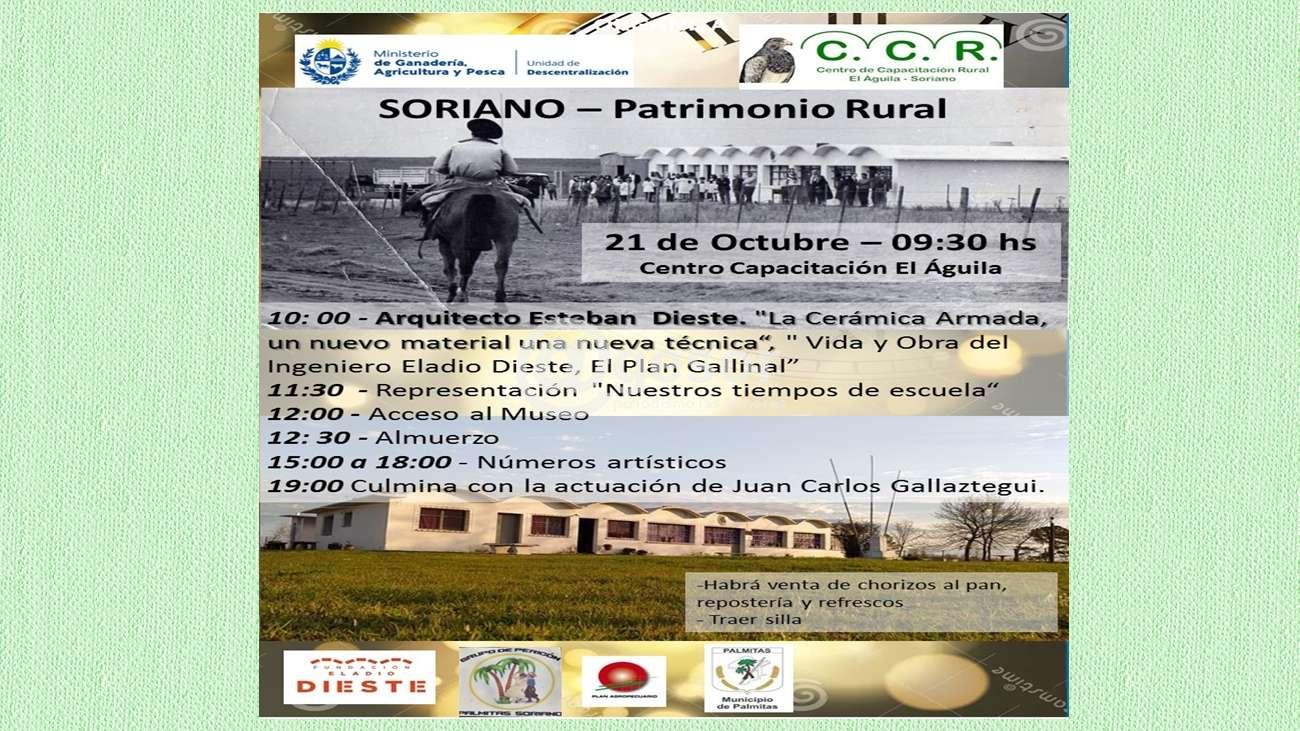 El sábado 21 de octubre en el Centro Capacitación El Aguila se realizará una jornada de reconociento al arq. Eladio Dieste, enmarcado en el mes del Patrimonio. La actividad es impulsada por la Unidad de Descentralización del Ministerio de Ganadería, con el siguiente programa: