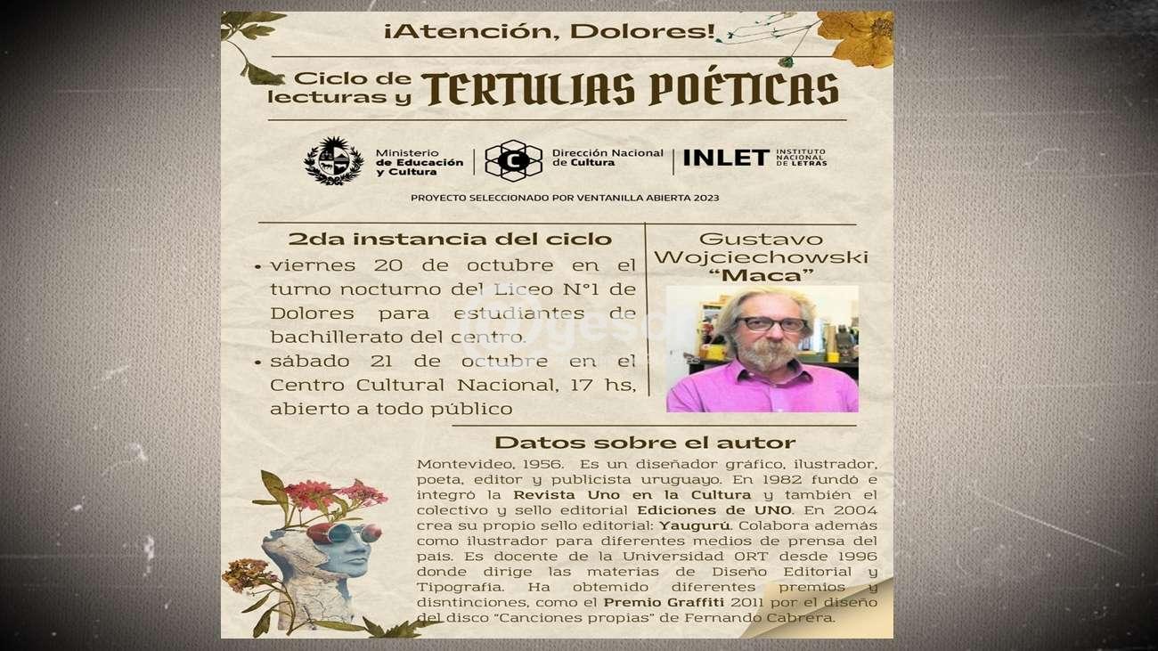 Continúa el ciclo de lecturas y Terturlas poéticas en el Centro Cultural Nacional de Dolores. En la oportunidad se contará con la participación de Gustavo Wojciechowski "Maca".