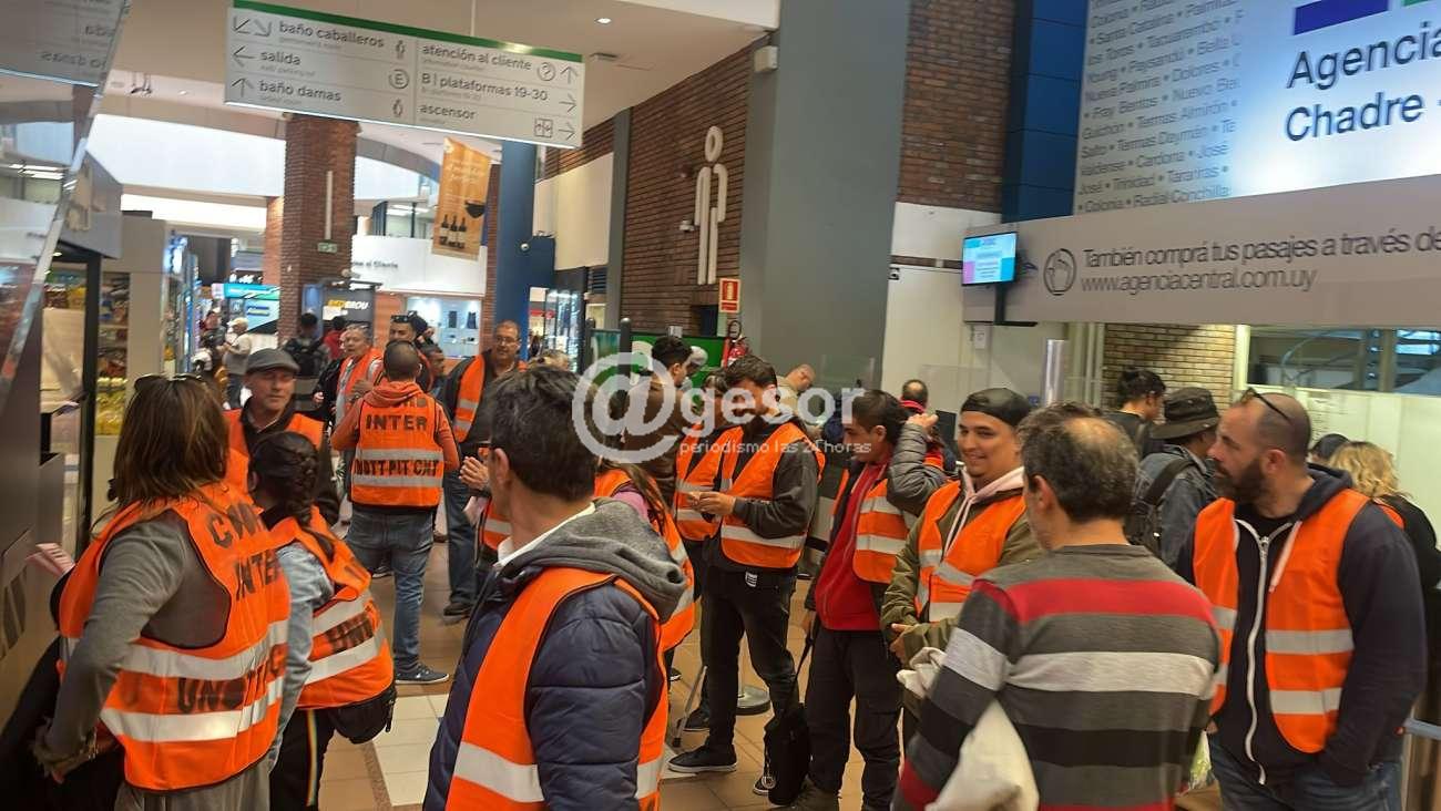 Trabajadores del transporte se manifestaron frente a Agencia Central en la terminal de Tres Cruces por el despido de 4 trabajadores. Una situación que ha tenido un par de instancias en la DINATRA sin resultados hasta el momento.
