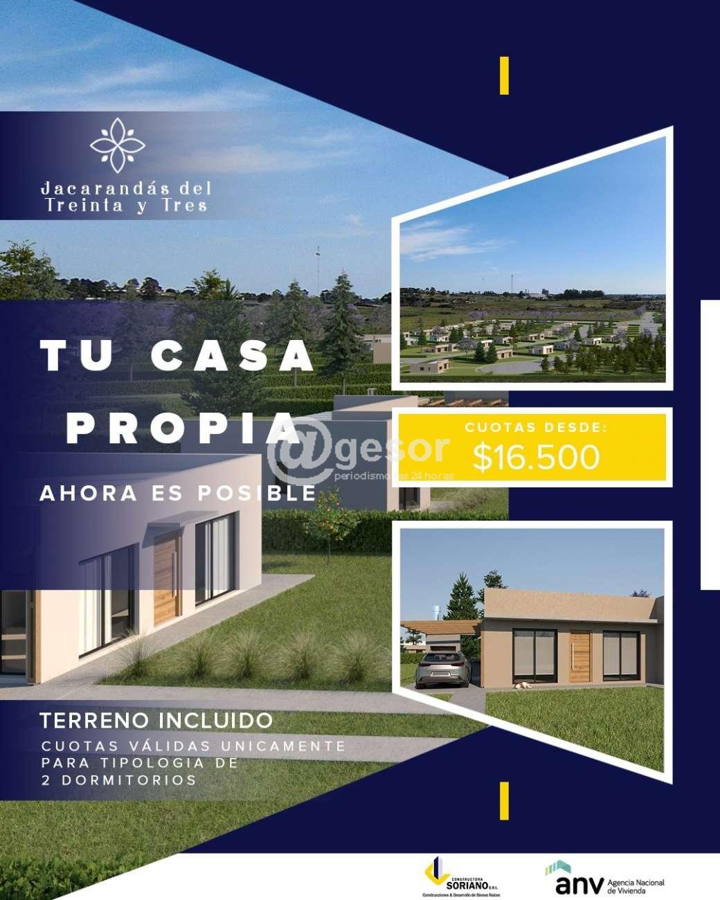 Como hemos venido informando Constructora Soriano estará llevando a cabo lo que se ha denominado barrio jardín Jacarandás 33 allí aledaño al barrio 33 de Mercedes, en zona suburbana, donde se construirán 150 casas de 1, 2, 3 y 4 dormitorios.