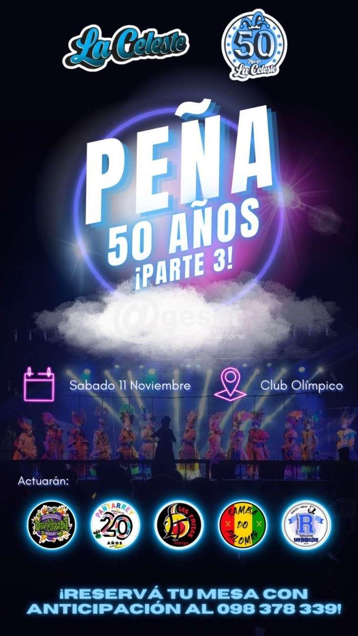 Este sábado 11 de noviembre en salón del Club Olímpico con la participación de varios grupos de Carnaval, se llevará a cabo una tercera edición de la peña por los 50 años de murga La Celeste, reservá tu mesa con anticipación al 098 378 339.
