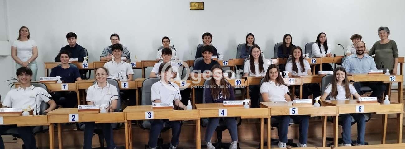 Un grupo de estudiantes de 9°Año 2 del Colegio Liceo San Miguel, fue recibido en la sala de sesiones “Carlos Rusch” en el medio día de este jueves.