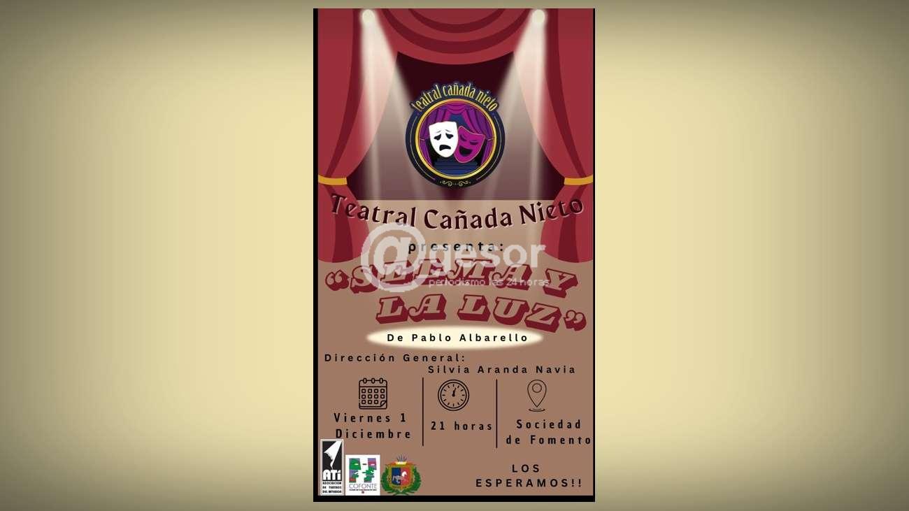 Este viernes 1 de diciembre Teatral Cañada Nieto se presentará en la Sociedad Fomento de la localidad para presentr la obra "Selma y La Luz" de Pablo Albarello. Una obra bajo la dirección general de Silvia Aranda Navia.