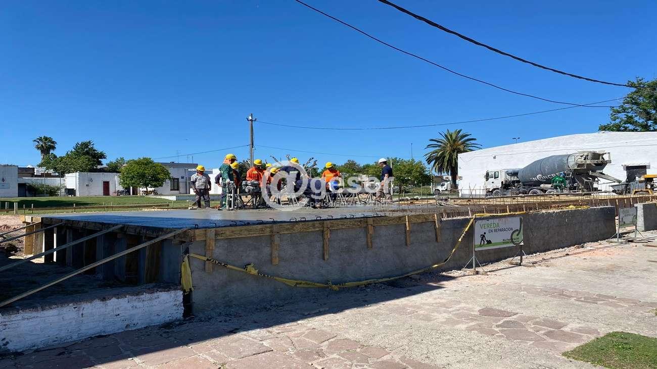 La tarea realizada por funcionarios del Dpto. de Arquitectura con el apoyo de otras áreas de la Intendencia de Soriano, permitió cubrir con hormigón un área de 23 m. x 10 m. Ahora se está en el periodo de fraguado del mismo que demandará de 5 días a una semana.