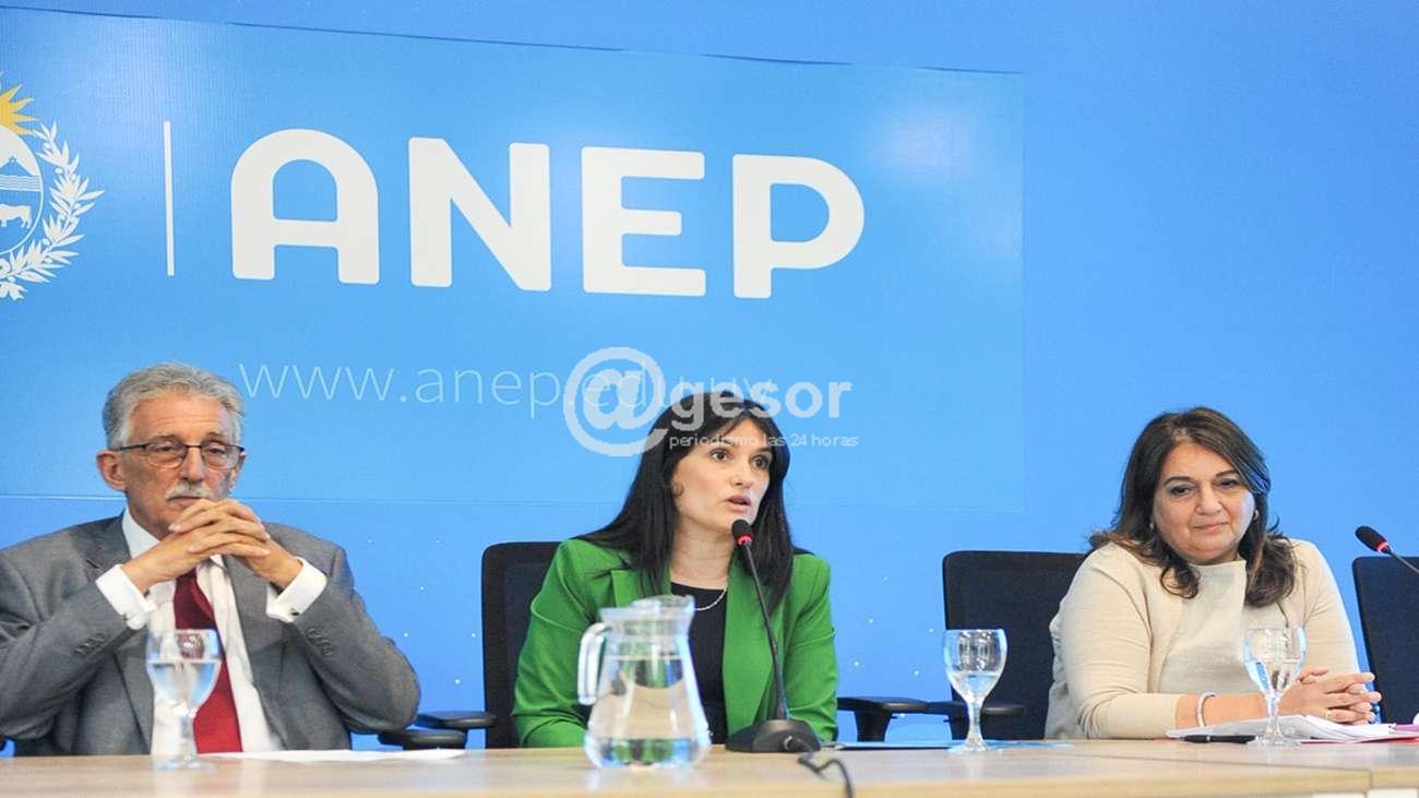 La presidenta de la Administración Nacional de Educación Pública, Virginia Cáceres; el director general de Educación Técnico Profesional, Juan Pereyra; la subdirectora, Laura Otamendi, y la directora técnica de Gestión Académica del organismo, Laura Bianchi, presentaron, este miércoles 6, el Monitor Educativo de Enseñanza Media Técnico Profesional 2022-2023, que releva la información sobre centros educativos, matrícula, aprobación, desvinculación y egreso, correspondientes a educación media básica y superior.