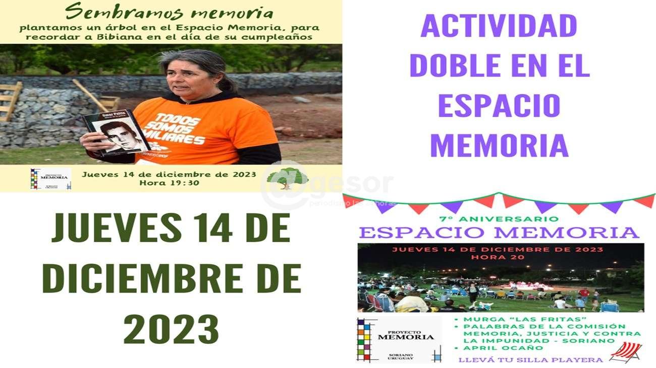 Este jueves 14 de diciembre se realizará una doble actividad en el Espacio Memoria, que recuerda a los detenidos desaparecidos de Soriano. La actividad es organizada por la Comisión Memoria, Justicia y contra la impunidad de Soriano.