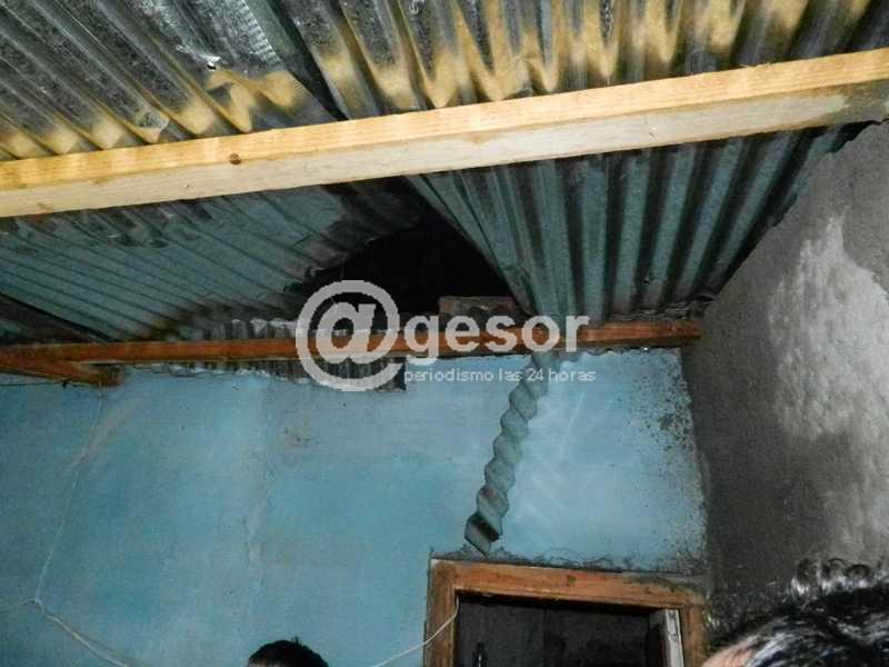 “En el lugar se constata el desprendimiento de chapas correspondientes a un baño medidas aproximadamente 1,80 x 2 Mt. , de una habitación de aproximadamente 3 x 2 Mt. y del living de aprox. 5 x 4 Mts.; habitando el lugar conjuntamente con los mayores, tres menores de 3, 13 y 15 años”, expresa la comunicación policial.