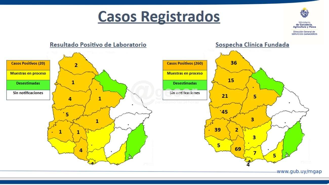 En documento adjunto incluimos el informe completo elaborado por la División de Sanidad Animal del MGAP.