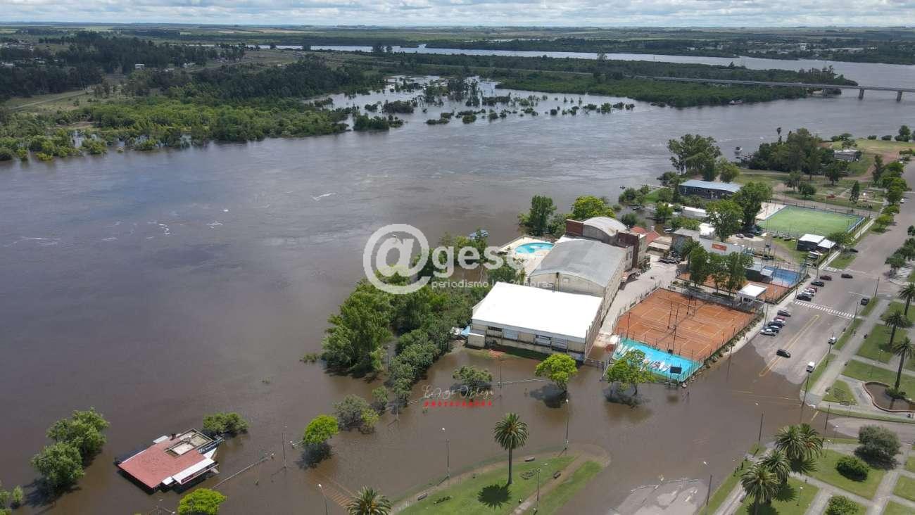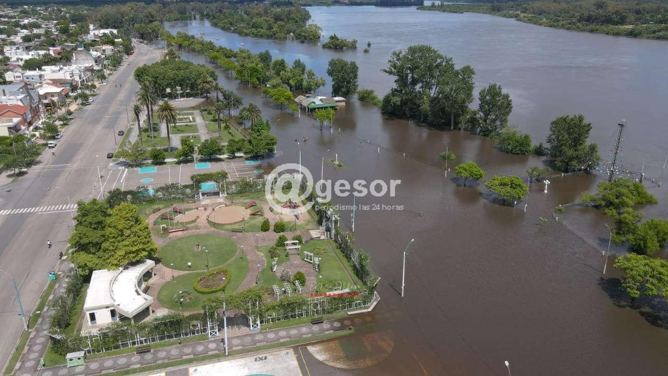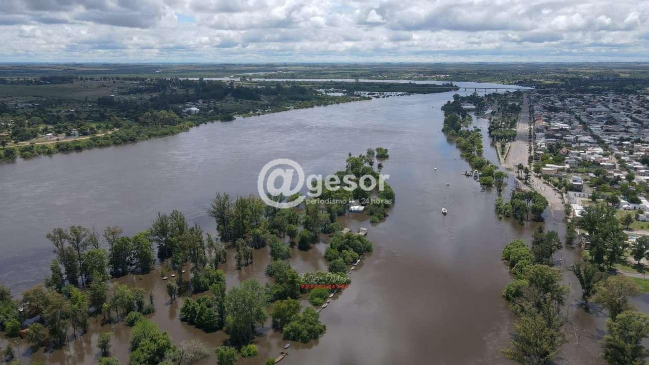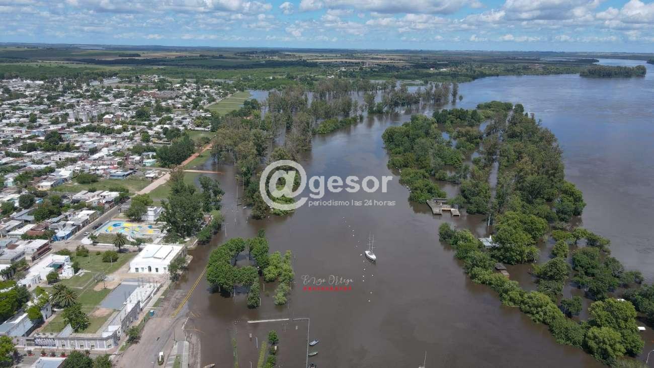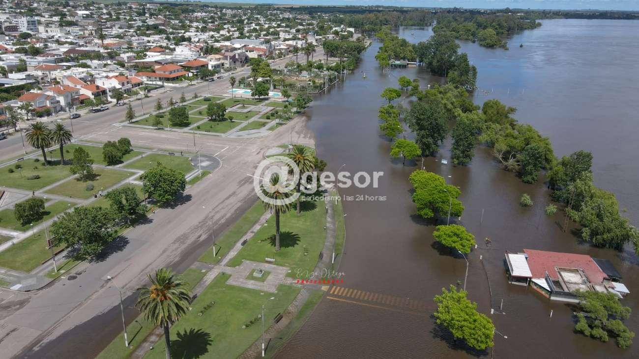 La mayor parte de la costanera de Mercedes se encuentra cubierta por las aguas del Hum, queda aun libre una zona de la rambla de la capital sorianense en los lugares más altos.