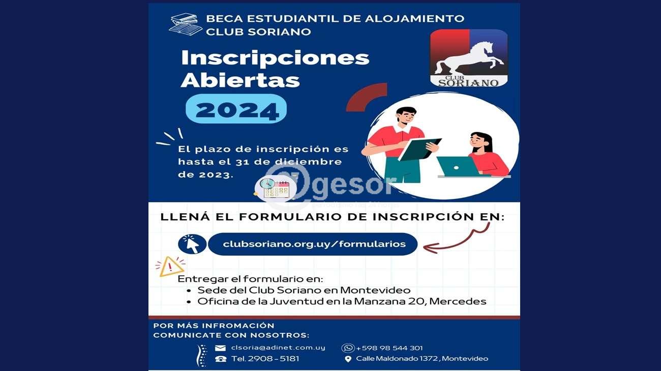 Las inscripciones para estas becas están actualmente abiertas y el plazo para postularse finaliza el 31 de diciembre. Para participar en este programa, los interesados deben completar el formulario disponible en www.clubsoriano.org.uy/formularios y presentarlo ya sea en la Sede del Club Soriano en Montevideo, ubicada en Calle Maldonado 1372, o en la Oficina de la Juventud en Manzana 20, Mercedes.