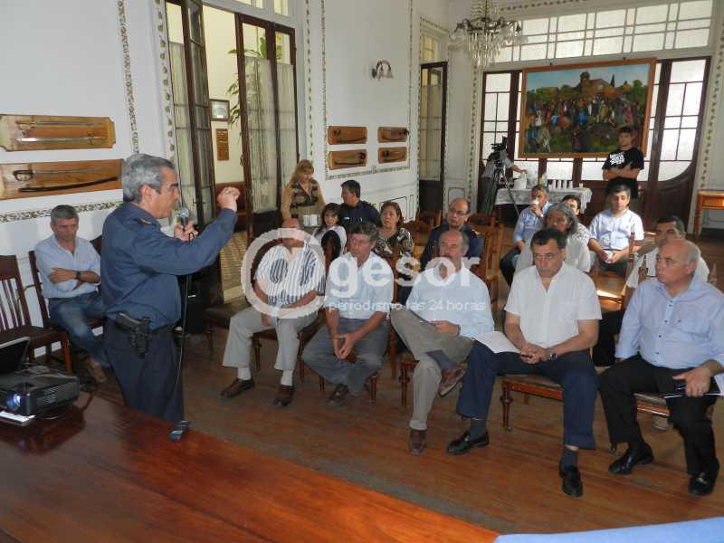 El Jefe de Policía de Soriano Insp. Gral. (r) Washington Curbelo Martínez durante la presentación del sistema de televigilancia que está instrumentándose, con la presencia de los intendentes de Soriano, Durazno y el suplente de Treinta y Tres, junto a los jefes de Policía de Durazno y Treinta y Tres, la Presidenta y el primer vice de la Junta Departamental, hizo referencia al robo de cereales.