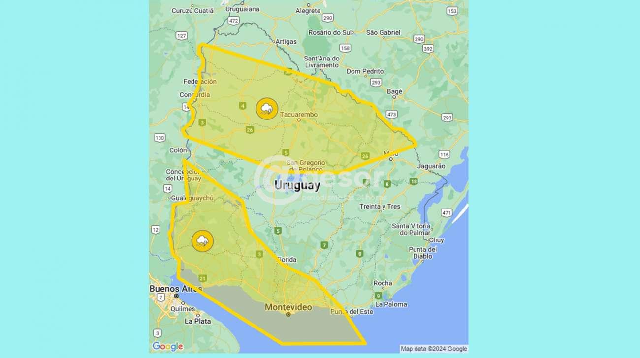 Descripción: Frente frío ingresa por el suroeste del país, generando tormentas algunas puntualmente fuertes. Cabe destacar que en zonas de tormentas se podrán registrar lluvias abundantes en cortos períodos, ocasional caída de granizo, intensa actividad eléctrica y rachas de vientos fuertes. Se continuará monitoreando la situación y se informará ante eventuales cambios.
