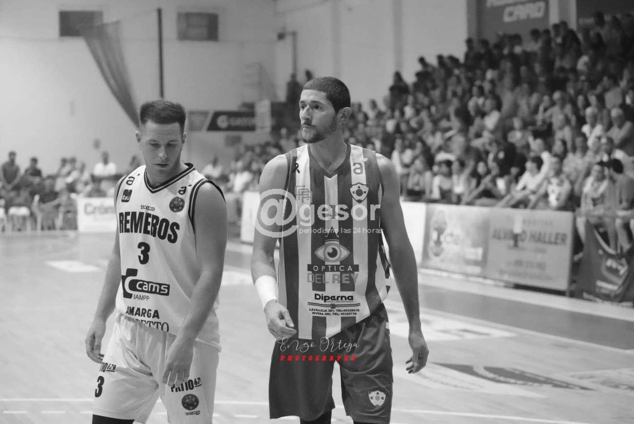 En este primer juego final, si bien Remeros arrancó mejor, con muy buena puntería de lanzamientos de tres, poniendo 4 de 4, mientras Racing no encontraba el gol y falló en ataque, pese a la buena distribución que ya comenzaba a realizar Panchi Barrera, el costero se había ido 27 a 15, pero un triple de Macchi cuando sonaba la chicarra puso el tanteador 27 a 18 al cierre del primer cuarto con destaque para el Flaco Ferreira y Brause, por un lado y para Barrera por el otro, aunque faltaba quien culminara por la academia.