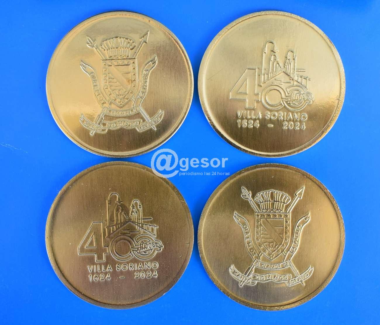 Respecto a las monedas, están acuñadas con el logo de los 400 años de Villa santo Domingo de Soriano en el anverso y con el escudo de “La Histórica” en el reverso.