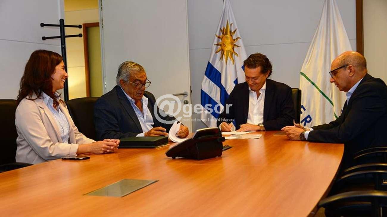 La firma del acuerdo se efectuó este lunes 26, en Torre Ejecutiva, con la presencia del presidente y del secretario general de la JND, Rodrigo Ferrés y Daniel Radío, respectivamente; y el intendente de Río Negro, Omar Lafluf.