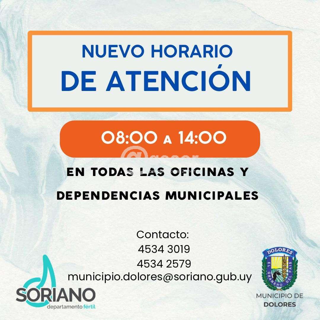 El Municipio de Dolores informa el nuevo horario de atención en todas las oficinas y dependencias municipales que a partir de ahora es de 8.00 a 14.00 horas.