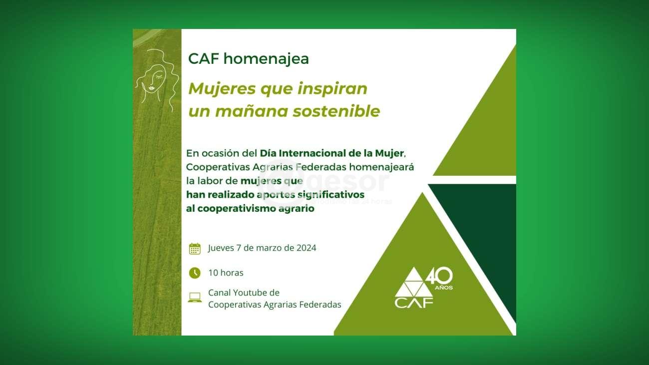 En el marco del Día Internacional de la Mujer, el jueves 7 de marzo de 2024 a las 10 horas, Cooperativas Agrarias Federadas (CAF) distinguirá a mujeres que han realizado aportes destacados al cooperativismo agrario desde diversos roles. La actividad será transmitida en vivo a través del canal de Youtube de CAF.