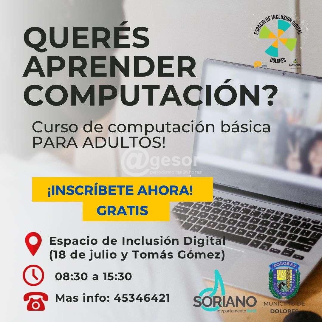 El Municipio de Dolores te invita ¿querés aprender computación? Se trata de curso de computación básica para adultos, podés inscribirte desde ahora, es gratuito.