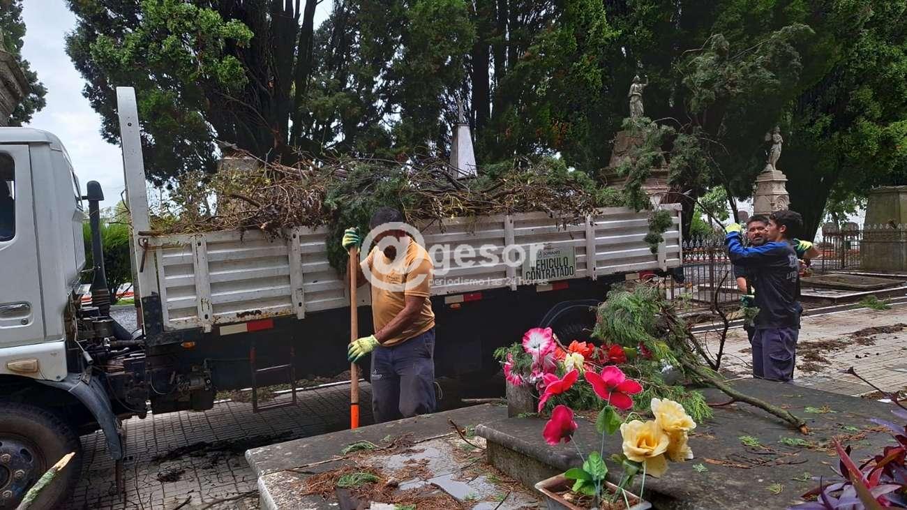 Como ya se había informado, la necrópolis permanecía cerrada (solo acceso por sepelios y bajo medidas de seguridad) debido a la cantidad de árboles y cables caídos en su interior producto del temporal del viernes pasado.