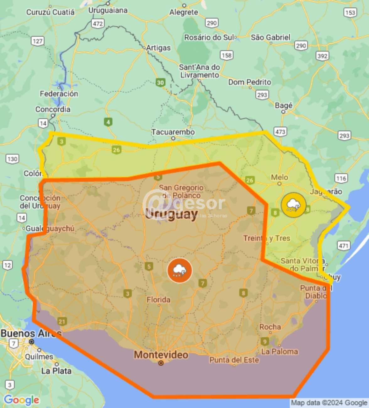 El INUMET emitió a las 10.10 horas de este miércoles un nuevo alerta que para buena parte del país es de color naranja y para otra de color amarillo, aquí ofrecemos los detalles, que se actualizarán a las 12.30 horas.