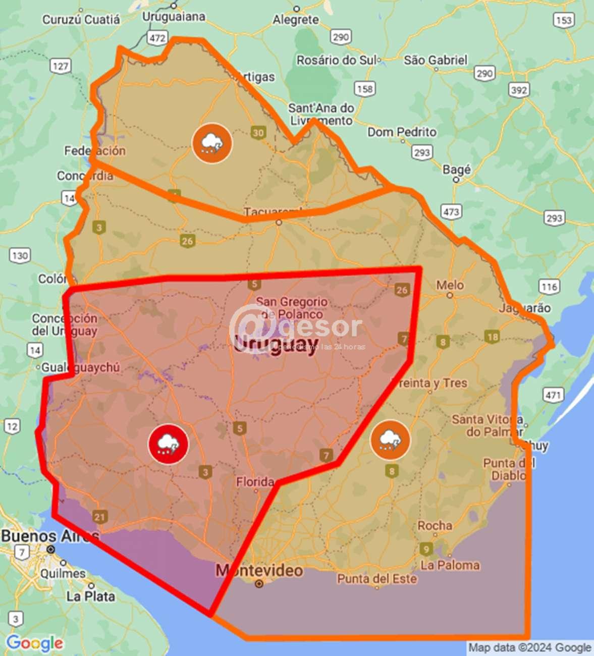 Con una probabilidad del 75% essta alerta roja incluye todo el departamento de Soriano.