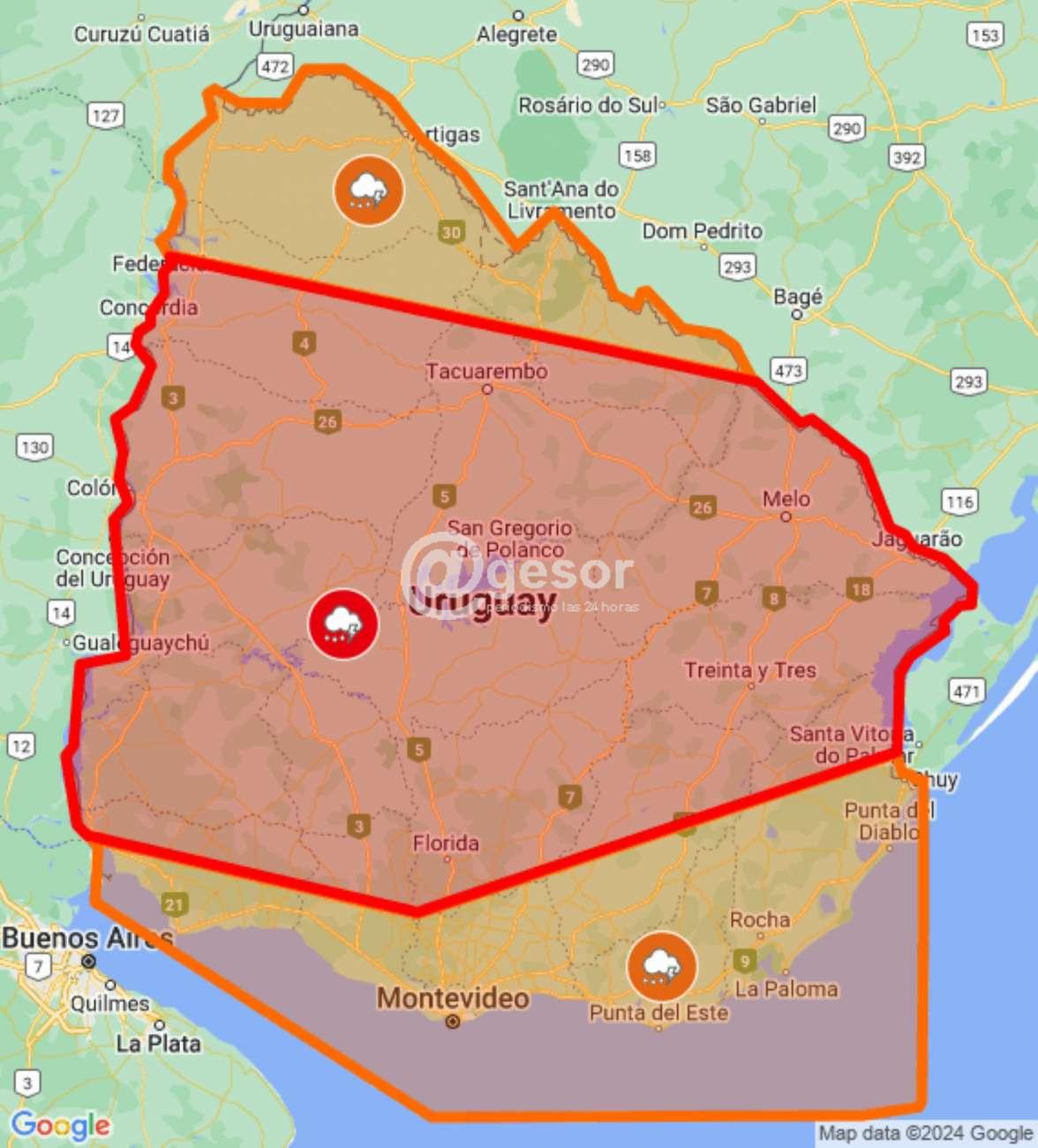INUMET amplió el alerta roja actualizándolo a las 21.00 horas y hasta las 34.00 horas con 75% de posibilidades de ocurrencia de tormentas fuertes y severas