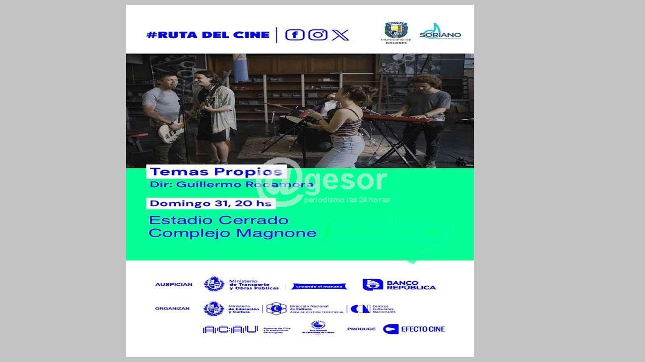 El Municipio de Dolores y la Intendencia Departamental de Soriano, en el marco de la Ruta del Cine, este domingo 31 de marzo a las 20.00 horas en el Estadio Cerrado del Complejo Magnone, a partir de las 20 horas. se proyectará la película "Temas Propios" de Guillermo Rocamora.