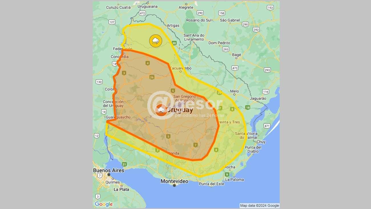 Descripción: Frente frío ingresa al país, generando tormentas algunas puntualmente fuertes. Cabe destacar que en zonas de tormentas se podrán registrar lluvias abundantes en cortos períodos, ocasional caída de granizo, intensa actividad eléctrica y rachas de vientos fuertes. Se continuará monitoreando la situación y se informará ante eventuales cambios.