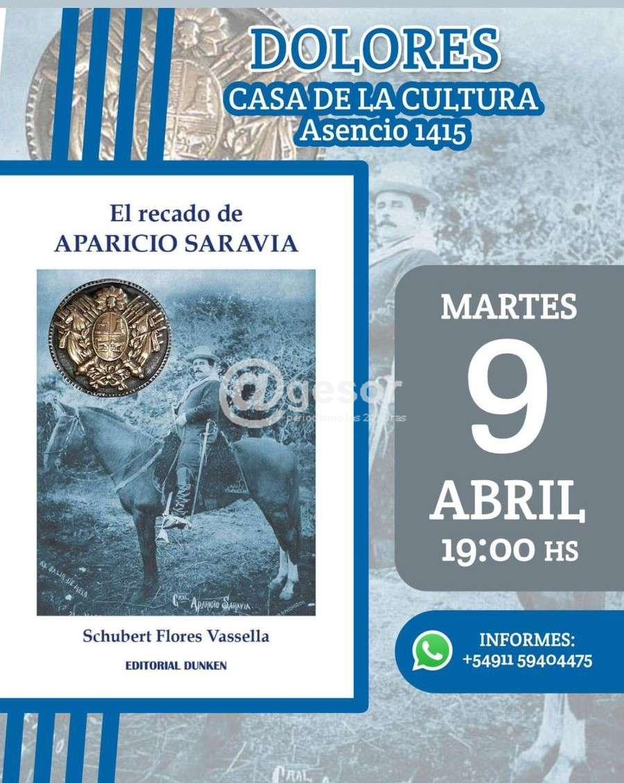 El Municipio de Dolores invita a la presentación del libro de Schubert Flores Vassella, "El Recado de Aparicio", actividad que se desarrollará en la Casa de la Cultura ubicada en Asencio 1415 este martes 9 de abril a partir de las 19.00 horas.