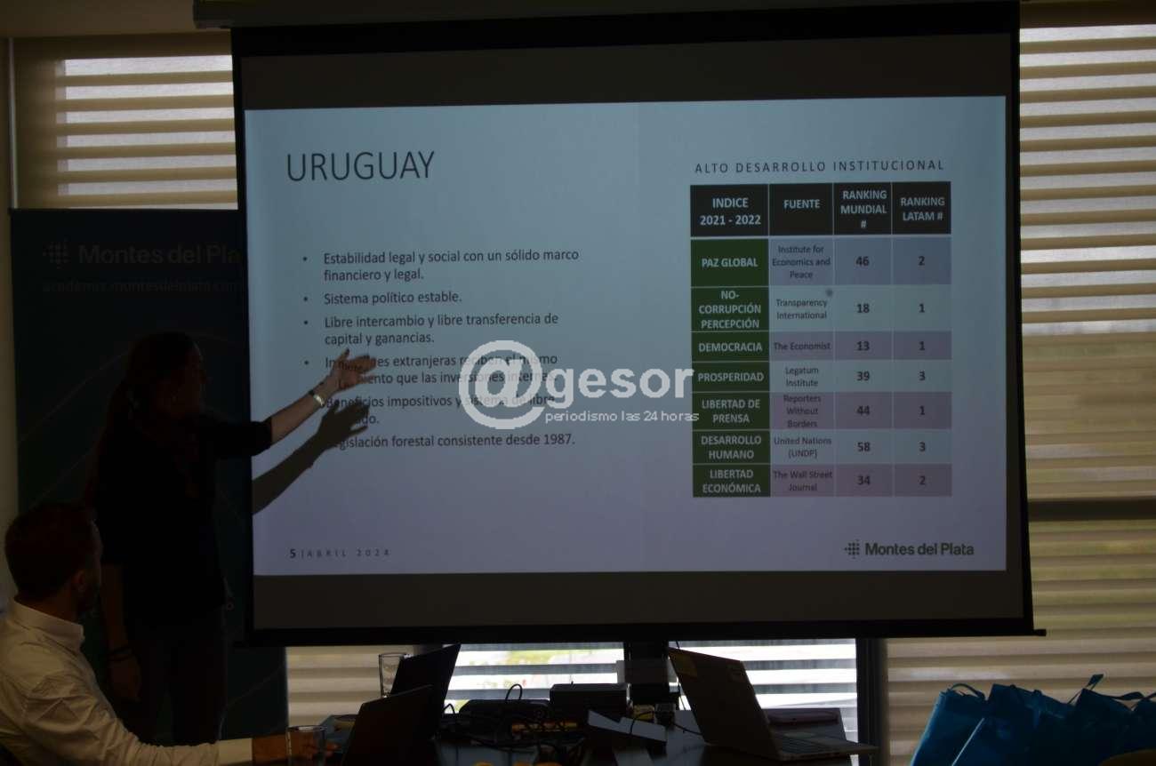 Después de detallar otros aspectos de lo que hacen a la generación de empleo Carolina Moreira se refirió a "la Academia Montes del Plata, que es una iniciativa maravillosa, que hace un par de años que estamos trabajando, en lo que es empleabilidad de nuestras personas, y los hijos de productores asociados en el programa de alianzas. Les hemos ofrecido a los hijos de productores que puedan tener su primera experiencia laboral acá en Montes del Plata, en las diferentes ramas, así como también a los empleados nuestros, que sus hijos que ya están en años avanzados en su carrera terciaria, o en sus primeros años posteriores a egresar, puedan tener su primera experiencia laboral"