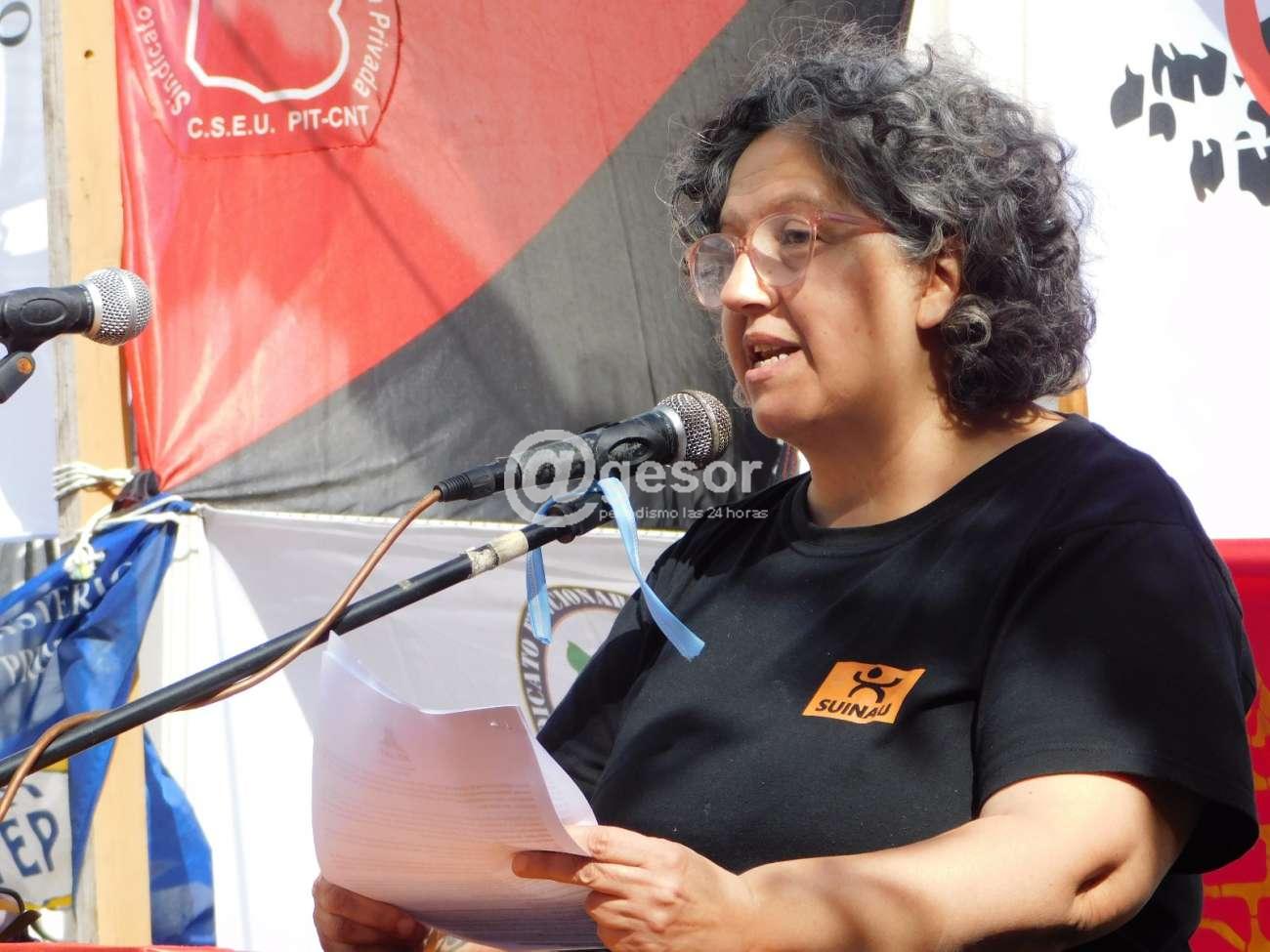 En el cierre de la oratoria del acto del Día Internacional de los Trabajadores quien hizo uso de la palabra fue la Presidenta del Plenario Intersindical de Soriano, Carolina Silva.