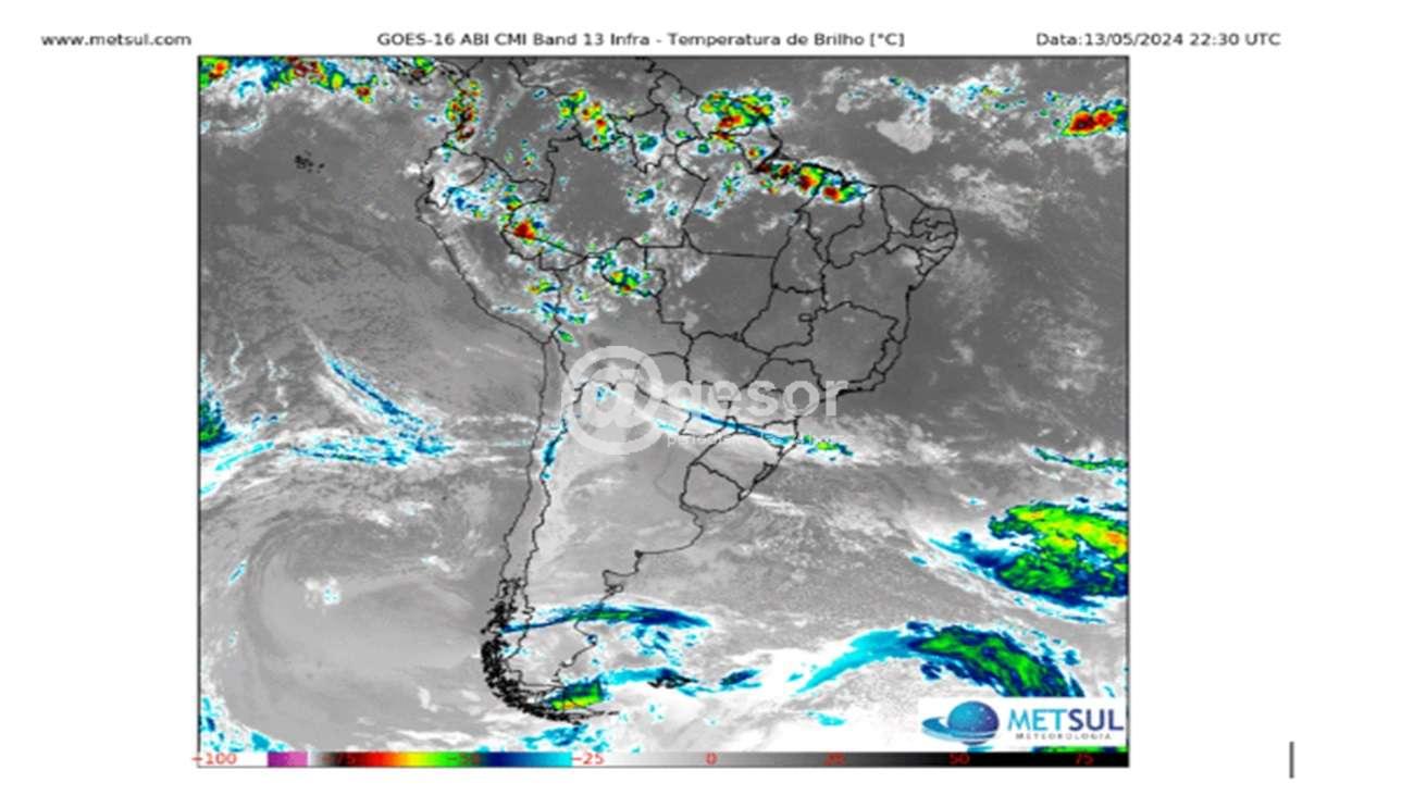 (escribe prof. Liber Rodríguez) La imagen satelital de banda infrarrojo propiciada por MetSul e Inumet, describen una proyección de sistemas fríos y tenues sistemas de cálidos, sur y norte respectivamente.