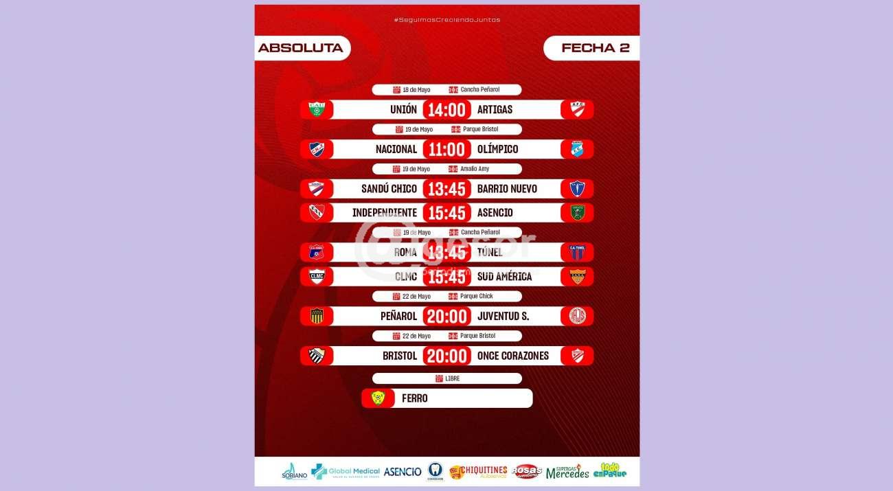Se fijó anoche bajo la presidencia del Dr. Pablo Marrero la segunda fecha del Torneo mercedario, estableciendo que el día sábado Unión desde las 14 horas enfrente a Artigas en cancha de Peñarol. El domingo abren la jornada a las 11 horas,  y para la TV,  Nacional con Olímpico.