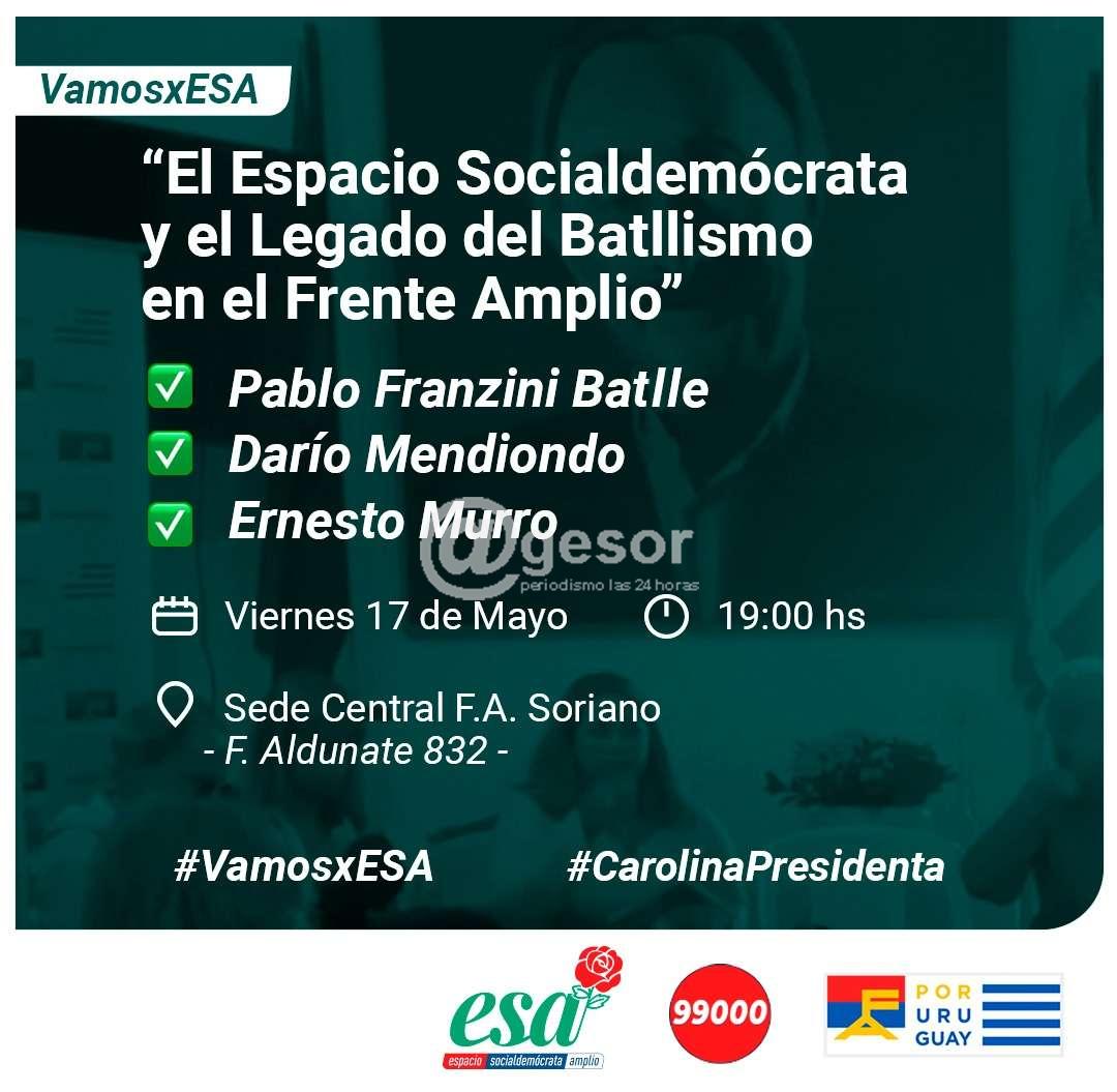 Son parte del Espacio Socialdemócrata y el Legado del Batllismo (ESA) en el Frente Amplio en apoyo a la precandidatura de Carolina Cosse.