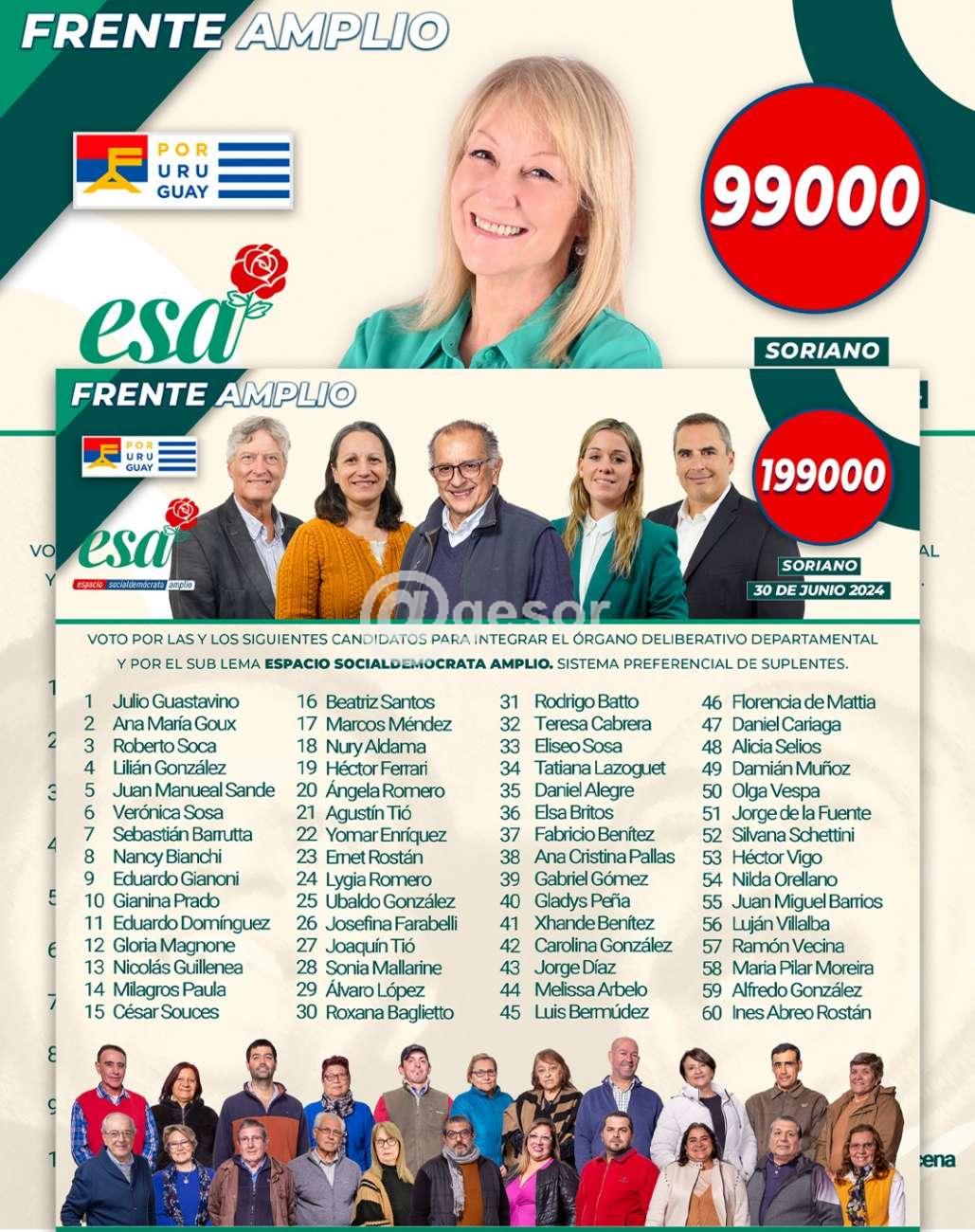 Pedí las listas 99000 y la 199000, Espacio Socialdemócrata Amplio, al celular 091 599 000 o retírala en Colón y Sánchez.