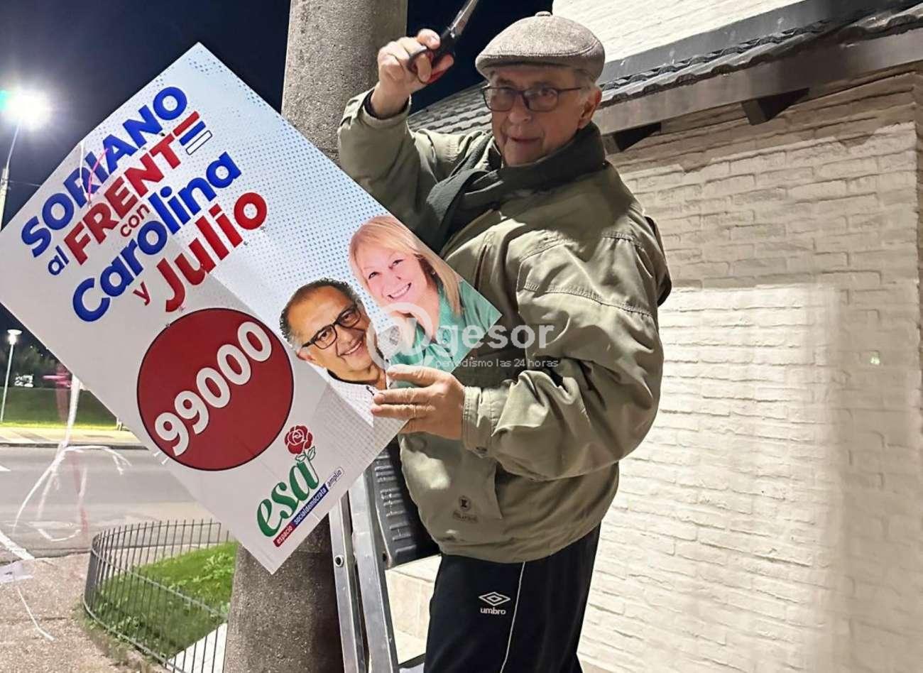 En la noche de este lunes, Julio Guastavino junto a Sebastián Barruta, parte de su equipo, salieron a bajar cartelería utilizada durante la campaña electoral que finalizó el pasado domingo en las Elecciones Internas, @gesor que los vio en un momento de su tarea, dialogó con Julio quien señaló "es muy importante cuanto antes cuidar la “polución visual” en las ciudades”.