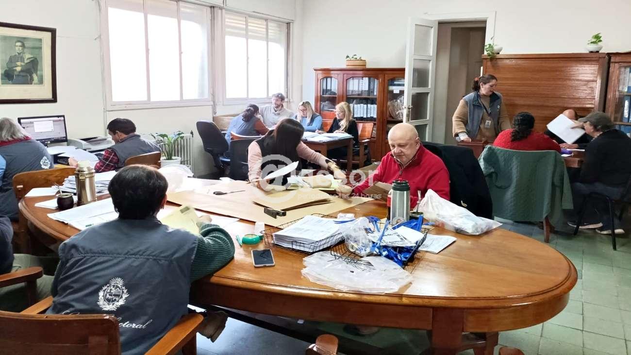 Comenzó el escrutinio departamental en sala de sesiones de la Junta Electoral de Soriano. El trabajo consiste en el repaso de cada una de las actas de los circuitos de votación de pasado domingo 30 de junio. Como se recordará en Soriano hubieron 217 circuitos electorales. El trabajo lo viene realizado personal de la Oficina Electoral de Soriano, e integrantes de la Junta Electoral de Soriano.