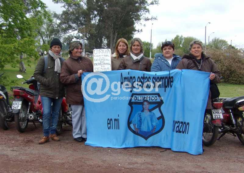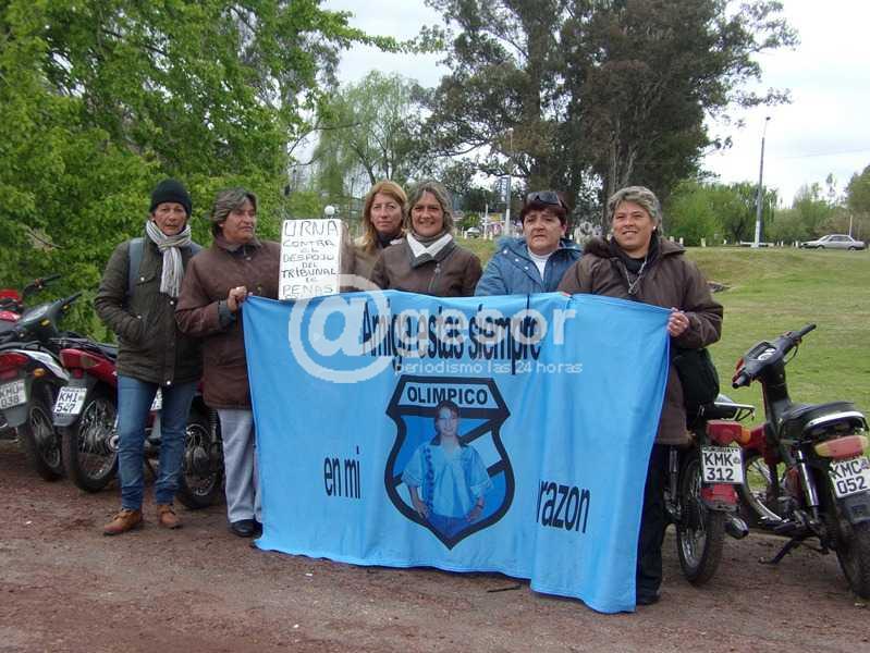 Las amigas y simpatizantes de la recordada joven, ubicadas  este domingo, en el acceso al parque Bristol al tiempo que recaudaban la colaboración, como lo viene haciendo desde la novena fecha del torneo Apertura en los escenarios donde juega Olímpico, -por la pena que rige y que hemos informado  con anterioridad- exhibían una bandera con la imagen de la extinta Cecilia Pereira”.