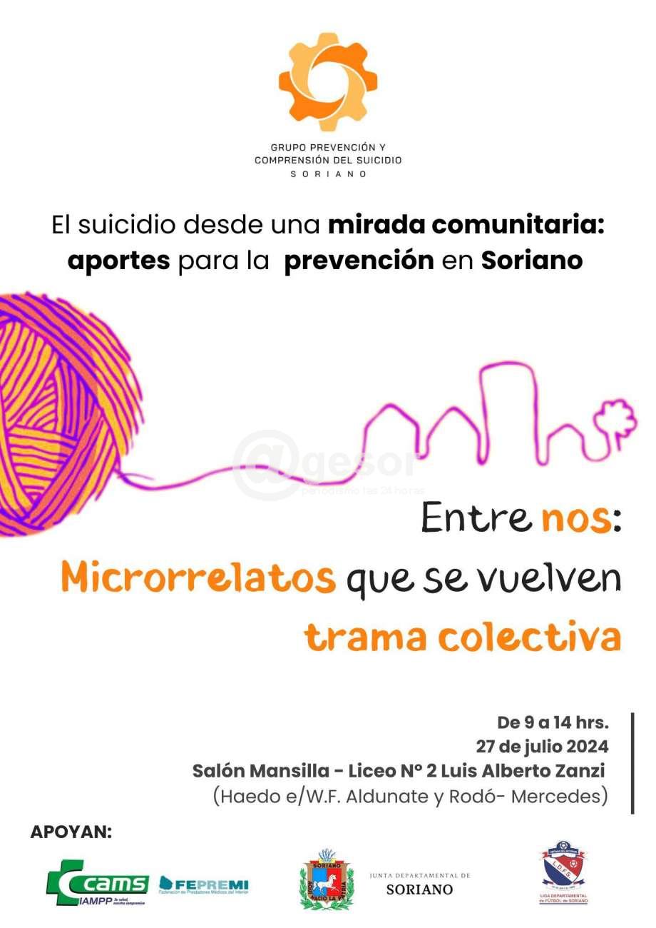 En el marco del DÍA NACIONAL DE PREVENCIÓN DE SUICIDIO, el grupo de Prevención y Comprensión de Soriano invita a la jornada "El suicidio desde una mirada comunitaria: aportes para la prevención en Soriano".
