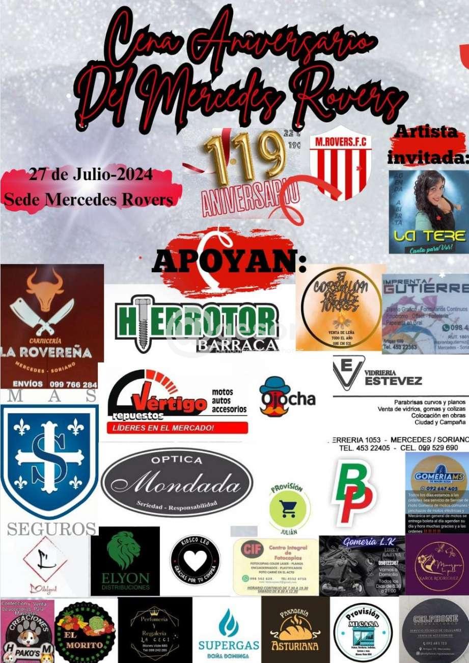 Este sábado 27 de julio se realiza la Cena Aniversario del Mercedes Rovers en la sede de la institución ubicada en Gomensoro entre Don Bosco y Casagrande donde estará celebrándose el 119 aniversario del club.