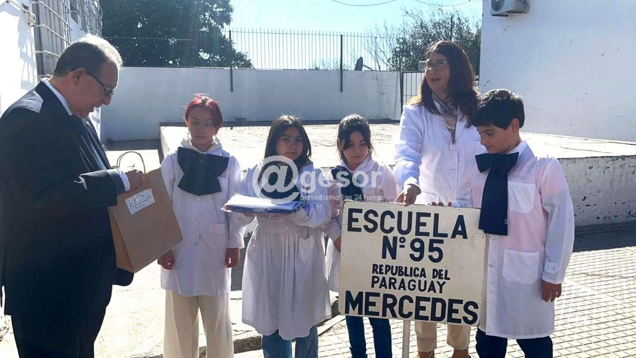 El Embajador de Paraguay en Uruguay, Didier César Olmedo Adorno, acompañado de la Ministra María Guadalupe Irala de Hernández, visitó Mercedes cumpliendo diferentes actividades, entre ellas reuniéndose con el Intendente de Soriano Guillermo Besozzi, concurriendo a los homenajes al aviador sorianense Luis Tuya y visitando la Escuela Nº 95 República del Paraguay en el barrio Oeste de Mercedes donde fue recibido por la Directora del centro de enseñanza Carla Varela, estando presentes, entre otros también en esta ocasión en dicha escuela integrantes de Comisión de Hogar Español, encabezados por su Presidente Ulises García, Esc. Sandra Rüsch, asimismo Martha Giménez exdirectora de la escuela, integrantes de Comisión de Fomento, alumnos, docentes y padres de la escuela.